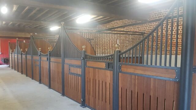 Nous sommes spécialistes de la fabrication de boxes pour chevaux sur mesure et adaptés à des configurations particulières, sur des bâtiments existants ou en projet. Notre gamme de produits est très vaste, du modèle standard à des modèles à l’ancienne ou contemporains, avec différents niveaux de finition : peinture epoxy sur galvanisation, lames ajourées, ornements…